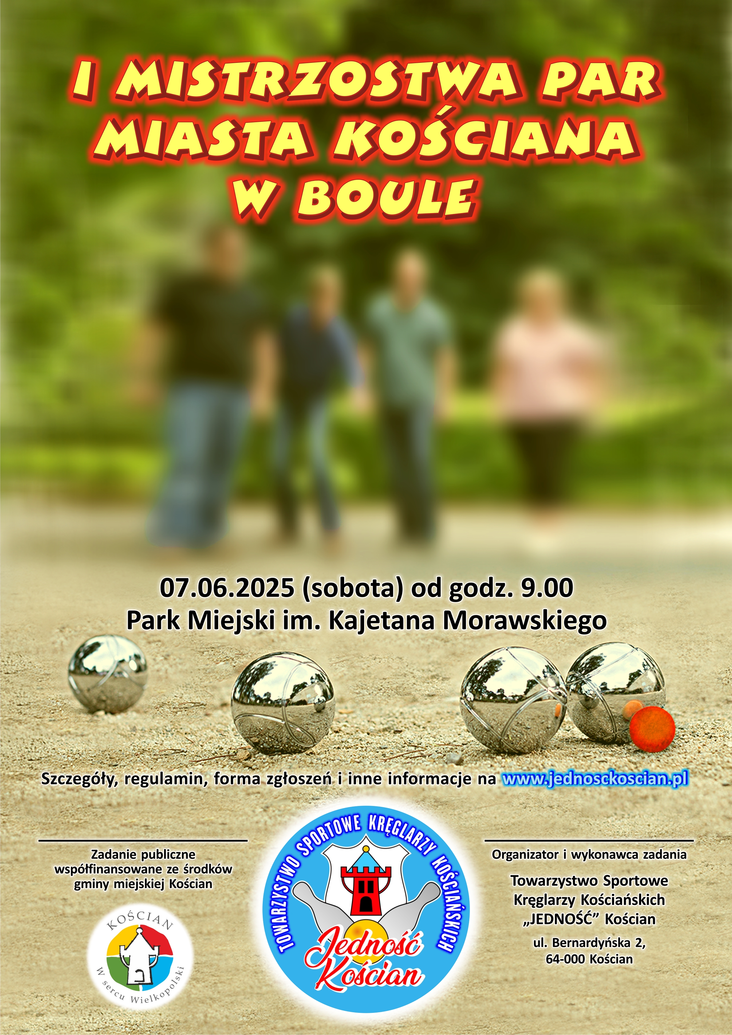 2025-05-19Dnia 07.06.2025 od godz. 9.00 na terenie parku miejskiego im. Kajetana Morawskiego w Kościanie odbyły się I mistrzostwa Par Miasta Kościana w Boule. Rozgrywki toczyły się w okolicach dawnej dyskoteki Gotham na okolicznych alejkach spacerowych.